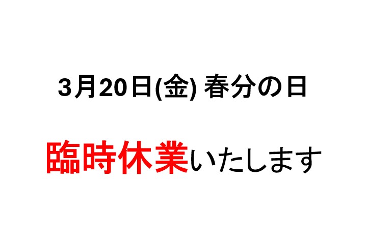 3月20日(金)春分の日、は誠に勝手ながらお休みさせていただきます。